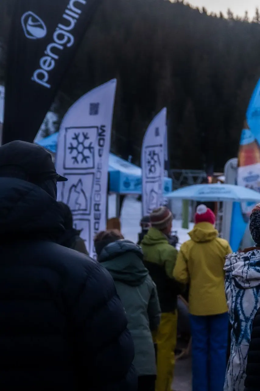 After the touring day, the legendary after-hour awaits at our booth together with Powderguide: music, drinks, and freeride talks, all accompanied by a satisfied grin and the occasional replay video.
